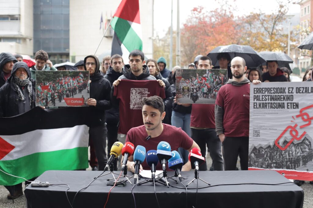 Esta mañana [miércoles 10 de diciembre], una comparecencia en Donostia (Gipuzkoa) ha contado con la presencia de varias personas que se han movilizado solidariamente por Palestina de la mano de la plataforma Palestinarekin Elkartasuna. Según han explicado, hay personas encausadas a raíz de una serie de acciones en favor de Palestina, como la protesta en el […]